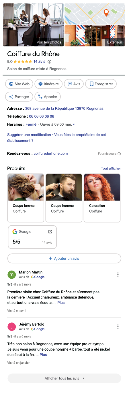 Bien renseignée, elle inspire confiance (avis, photos, horaires, services). C’est souvent le premier point de contact… avant même le site web !
